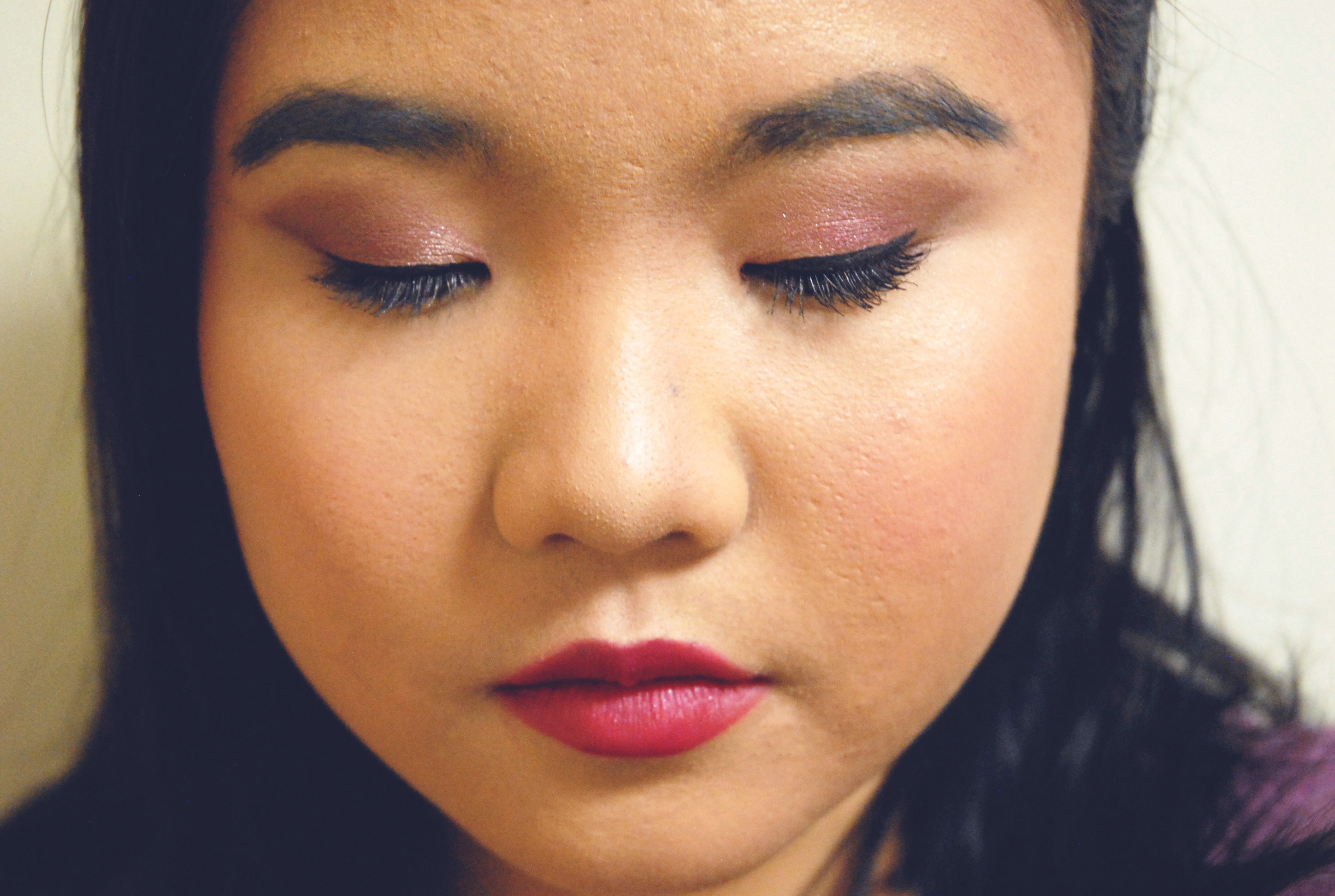 Hello, lovelies! I am sorry for being away so long, unannounced. I meant to put something up and explain my absence, but life and school got in the way for these past few weeks, so please forgive me. Anyhow, 2015, huh? How about that? Being a New Year, I found it only appropriate to talk about Pantone’s Color of the Year. For the past few decades or so, Pantone has hand-picked a shade which would set the tone for trends in design, fashion, and other visual and creative fields, and as you may already know, for 2015, the color is Marsala. Marsala is a wine-toned red shade with a brown undertone base and with that in mind, I attempted to put together a look that incorporated this color using a few drugstore products and things I already had. However, as I used things from the drugstore, I could not swatch them therefore some of the colors are not as perfectly matched as I would have hoped. Nonetheless, Marsala’s signature that sets it apart from other wine colors is the brown undertone, giving it a rich earthiness that was popular in the 90s. I tried to keep that in mind when putting together this look despite those few bumps, so without further ado, here is my pass at Marsala for 2015!