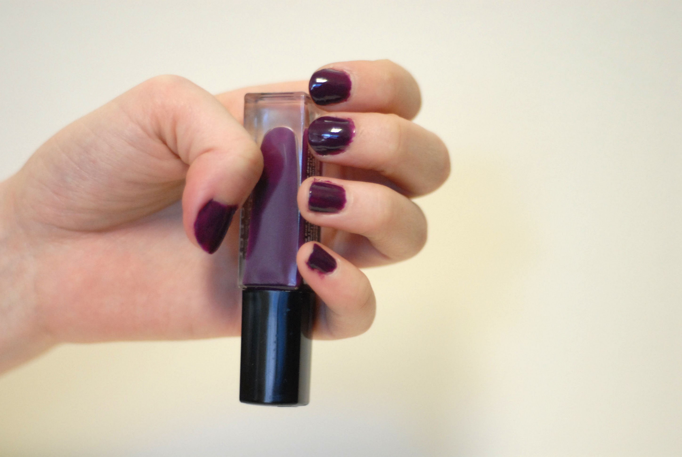 - The color was very pigmented and rich and is a beautiful fall and winter shade. It applies darker than pictured online, though, and is more purple than expected. 4/5