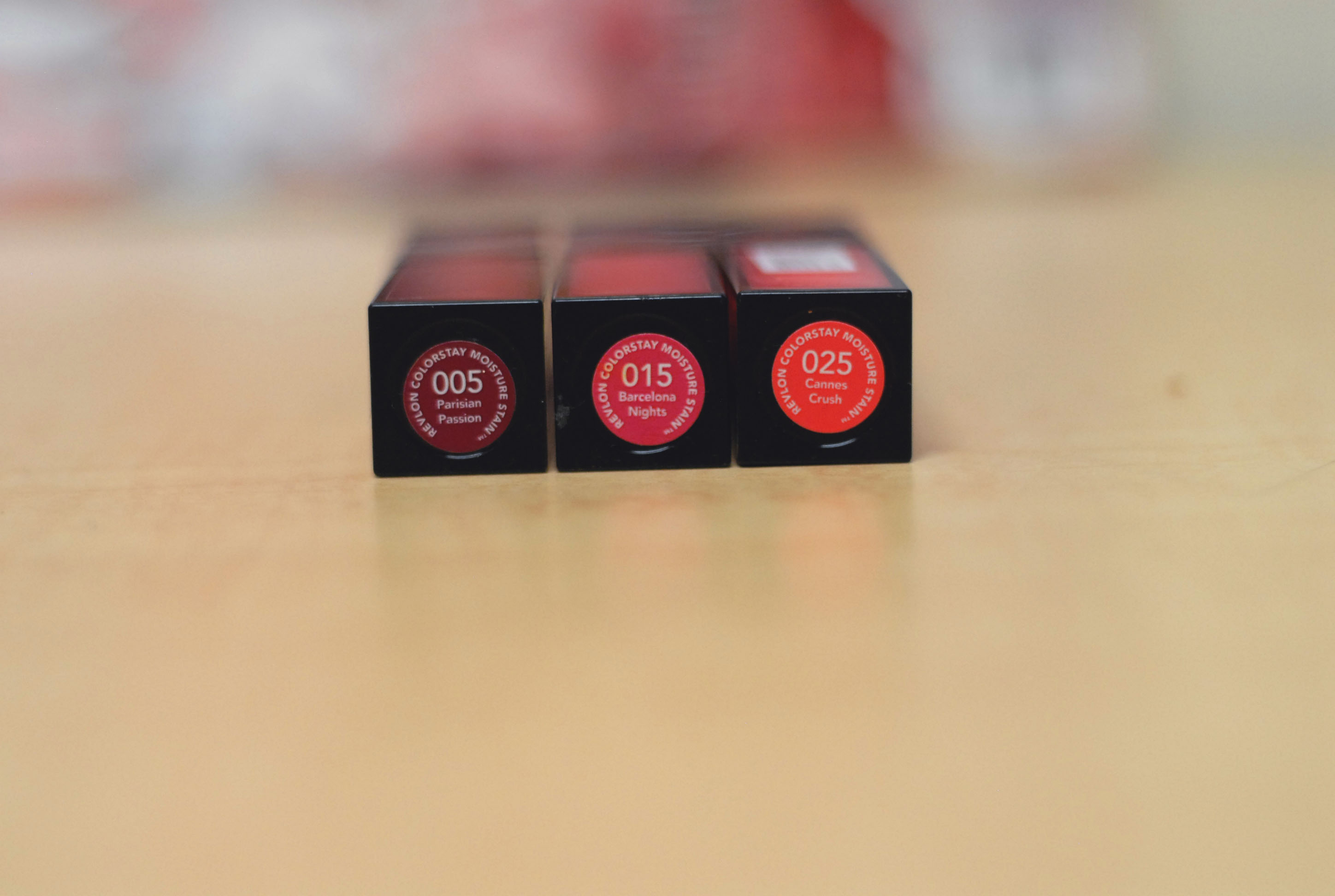 There are 12 shades in the whole range, and I have three of them here. Since there are only a handful of colors in the range, I feel like just from these colors I have a good grasp on the range of products since I have a dark, medium, and light shade. There seems to be an even distribution of warm and cool colors and more medium and light colors than dark in the collection and they run for about $9 at the drugstore. The shades I have are Parisian Passion, Barcelona Nights, and Cannes Crush.